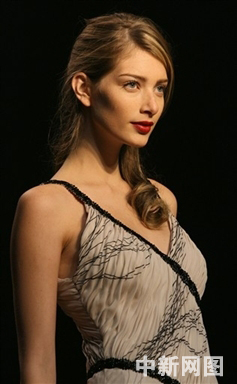 2006年2月14日,倫敦時裝周在倫敦自然歷史博物館開幕。圖為模特在時裝周開幕第一天展示設計師Amanda Wakeley的作品。