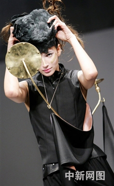 2006年2月20日,米蘭時裝周,一名模特正在展示日本設計師Kei Kagami的2006/2007秋冬女裝作品。
