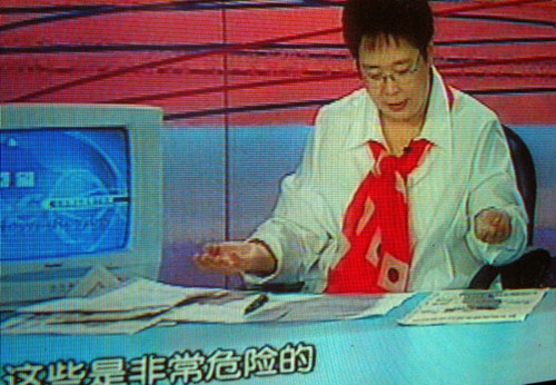 2004年3月29日,張越在主持中央電視臺一套《半邊天》節(jié)目時戴了一條印有類似日本國旗的圍巾,節(jié)目播出后被觀眾投訴。最后,央視國際網(wǎng)絡不得不出面澄清,以平息網(wǎng)友眾怒。