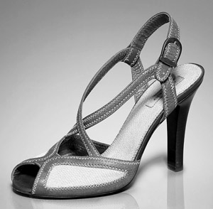 對晚宴鞋來說,今年春夏的時尚風不知是喜是悲。悲的是,由于舞蹈鞋和楔跟鞋的沖擊,向來派對女主角的晚宴鞋,頗有冷落之意;喜的是,晚宴鞋在這個夏天開始走上街頭,與各類褲裝搭配,另打拼出一片天地。就款式而言,本季晚宴鞋沒有太多新意,無非是更加強調華麗,以金色、彩色系帶和丁字細高跟涼鞋為主,鑲有彩色水晶,充分發(fā)揮張揚之能事。不過,本季晚宴鞋最突出的款式是,腳踝處的搭襻細跟涼鞋,絕對比高跟涼拖更為搶眼。