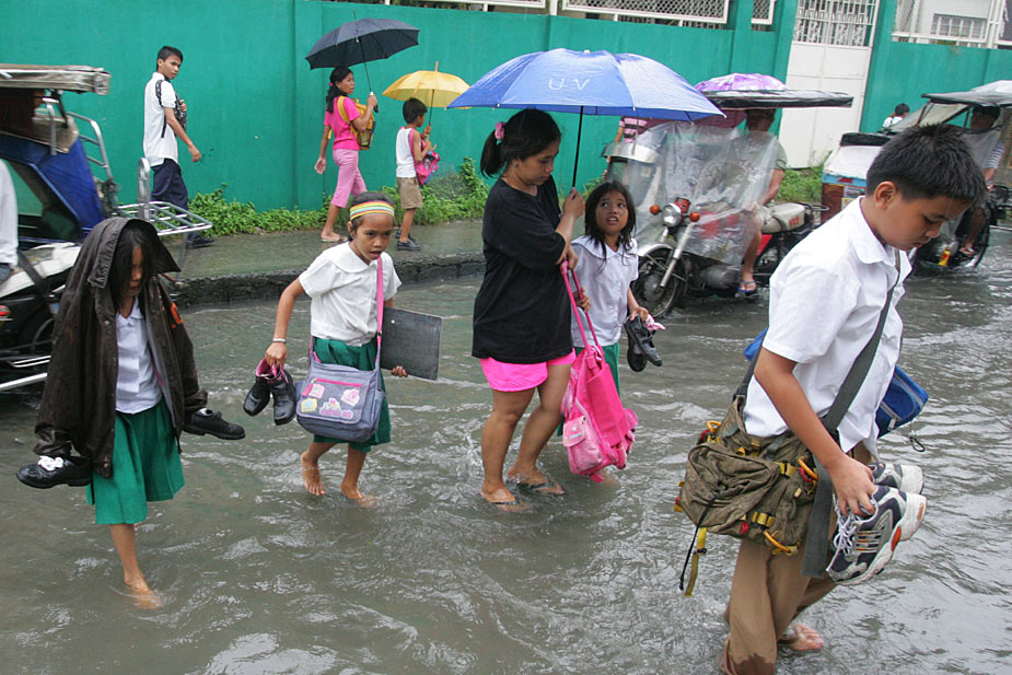 7月16日,一場熱帶風暴當天襲擊了菲律賓首都馬尼拉。這場風暴不但帶來大量降水,也使城市大量積水,出行困難。