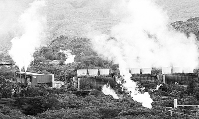 圖為肯尼亞裂谷省的歐卡瑞地?zé)犭姀S。該地?zé)犭姀S二期擴建工程目前已經(jīng)完成了70%的地?zé)峋@探工作,新的地?zé)峋A(yù)計將在兩年內(nèi)產(chǎn)生280兆瓦的電能?夏醽啅1981年開始開發(fā)地?zé)豳Y源以來,共鉆探了33口地?zé)峋S捎诘責(zé)豳Y源不受氣候因素影響,發(fā)電價格不受國際原油價格波動的干擾,地?zé)岚l(fā)電是肯尼亞目前最便宜的發(fā)電方式?夏醽喌?zé)岚l(fā)電資源非常豐富,共有7000兆瓦的地?zé)岚l(fā)電潛力。