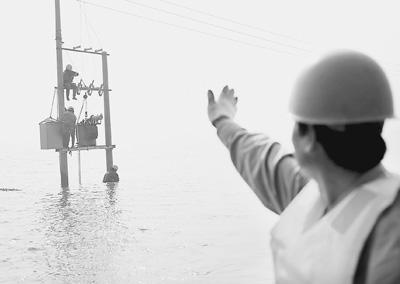 “必須趕在退潮前完成變壓器的安裝工作!”下午2時10分,22歲的浙江紹興電力局上虞市供電局線路二班的陶浙錦第三次扎進混濁的海水,一支60多斤重的槽鋼被他從水下艱難背起。在桿上隊友的幫助下,槽鋼終于穩(wěn)穩(wěn)固定在水泥電桿上。