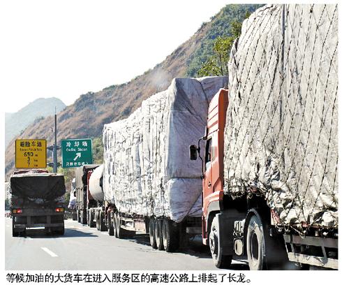 記者昨日從韶關(guān)交警京珠北大隊獲悉,受近期柴油供應(yīng)緊張影響,京港澳高速公路粵境北段各服務(wù)區(qū)連日來不約而同地出現(xiàn)了大貨車排長龍進服務(wù)區(qū)加油的現(xiàn)象,令許多車輛無法進服務(wù)區(qū)休息補給。