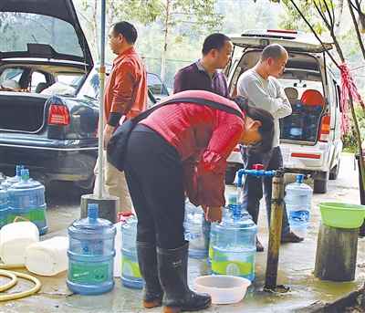 1月31日中午,在廣州市帽峰山腳下的一個賣水點,一個上午賣掉了上千桶水。