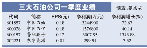 按照國際會計準則,一季度中石油實現(xiàn)凈利潤325億元,同比增長71%。中石化凈利潤同比增長近40%,達158億元。中海油雖未公布一季度業(yè)績,但油氣凈產量達6730萬桶油當量,同比大幅增長32%。