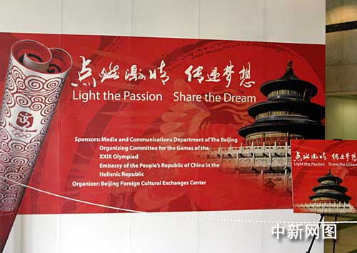當(dāng)?shù)貢r間3月29日,“點燃激情、傳遞夢想”北京奧運會火炬?zhèn)鬟f主題圖片展覽,在希臘奧委會辦公樓一層大廳舉辦。 中新社記者 王歡