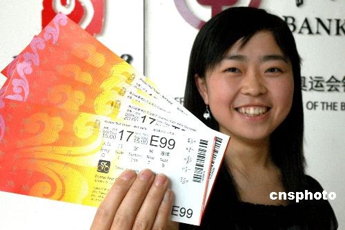 5月20日,一位四川南充市民展示自己剛剛訂購的奧運門票。受汶川地震影響奧運門票第三階段付款時間延長,四川南充市民冒著余震搶購?qiáng)W運門票。據(jù)一位銷售人員介紹,近段時間,南充時常受到余震的干擾,可還是無法阻擋南充市民購買奧運門票的熱情,每天都會吸引不少市民前來咨詢訂購。目前,奧運門票北京賽區(qū)比賽賽場的所有比賽項目門票已經(jīng)全部賣出,只有天津、上海、沈陽等賽區(qū)還有大量足球比賽門票正在熱賣中。 中新社發(fā) 龍之文 攝