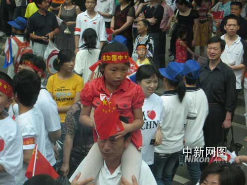 五月三十一日,奧運火炬接力在武漢進行,數(shù)十萬熱情的武漢市民從八方趕來,為奧運喝彩,為中國加油。(作者 艾啟平)