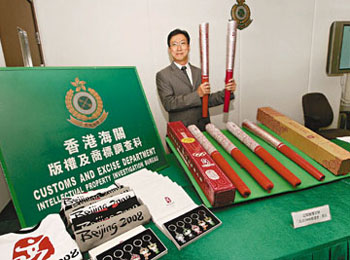 趙育雄重申,海關(guān)一向致力與奧委會合作,打擊一切侵權(quán)活動。根據(jù)紀(jì)錄,2005年至今,海關(guān)一共破獲16宗涉及“2008北京奧運會”商品的侵權(quán)案,檢獲大批侵權(quán)鎖匙扣、手表、襟章、貼紙及衣服等,共值3.2萬元。至于偽冒的“祥云火炬”則是首次檢獲。