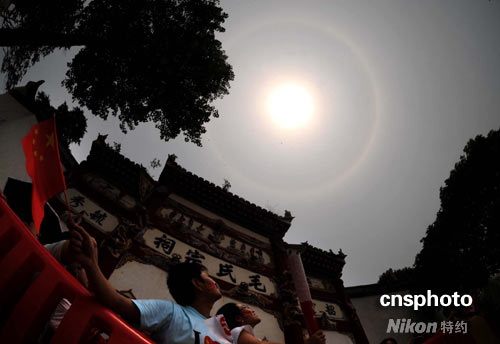 值得一提的是,在韶山的奧運(yùn)圣火傳遞結(jié)束之后,天空中的太陽(yáng)出現(xiàn)了一圈光暈,非常美麗。日暈也吸引了大批觀看圣火的觀眾觀看,并嘖嘖驚嘆。