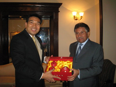 巴基斯坦總統(tǒng)穆沙拉夫(右)表示為奧運(yùn)會(huì)安全全力提供協(xié)助