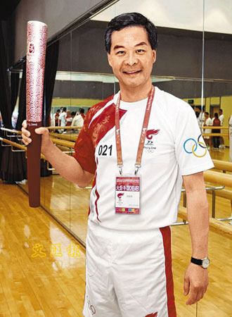 但“我跑完后,那把火炬還未曾返過我寫字樓”,原來梁振英借出奧運火炬及火炬手制服,給一所學(xué)校拍照留念并捐款賑災(zāi)后,家長教師會見狀亦趕忙向他商轉(zhuǎn)借展覽,故火炬兜兜轉(zhuǎn)轉(zhuǎn),直到9日才送回他的辦公室。