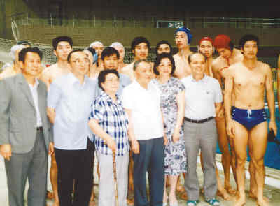 1990年7月3日,鄧小平視察北京亞運(yùn)村后,在游泳館看望中國水球隊(duì)運(yùn)動(dòng)員。