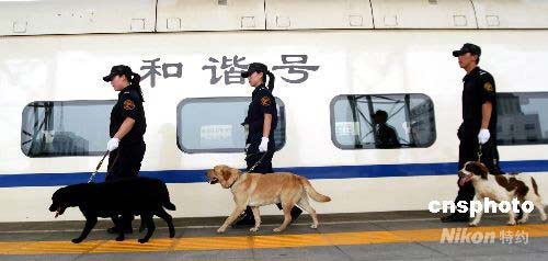 7月14日,沈陽鐵路公安處警犬基地的3只搜爆犬正式投入沈鐵公安的奧運(yùn)安保工作中。據(jù)了解沈陽鐵路公安處警犬基地共有37只警犬,其中大部分為德國牧羊犬,承擔(dān)著巡線護(hù)線任務(wù),這次投入搜爆、安檢工作的主要為史賓格、拉布拉多等犬種,它們將在奧運(yùn)安保期間負(fù)責(zé)站臺、貴賓室等重要地點(diǎn)的安檢及搜爆工作,以確保鐵路的安全。中新社發(fā) 趙敬東 攝