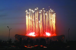 組圖:“鳥巢”首次全身亮燈彩排 并試放禮花