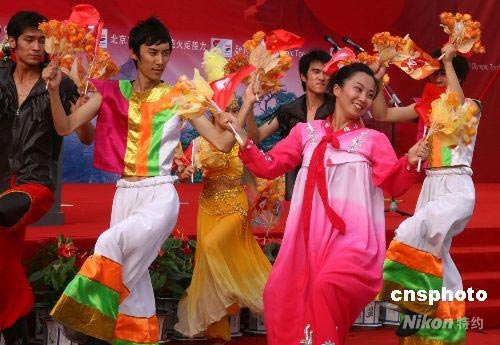圖:鞍山群眾載歌載舞喜迎奧運火炬