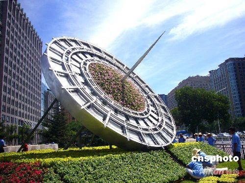 圖:日晷、渾天儀造型的奧運花壇亮相(2)