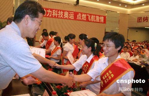 7月18日,承擔(dān)北京奧運(yùn)火炬研制任務(wù)的中國航天科工集團(tuán)第三研究院在北京舉行總結(jié)和頒獎大會,對該院奧運(yùn)火炬研制及技術(shù)保障團(tuán)隊進(jìn)行表彰。據(jù)悉,在借鑒火箭發(fā)動機(jī)技術(shù)的基礎(chǔ)上,北京奧運(yùn)火炬燃燒系統(tǒng)大膽創(chuàng)新,各項指標(biāo)都遠(yuǎn)遠(yuǎn)超出北京奧組委設(shè)計要求,多項技術(shù)世界首創(chuàng),并已經(jīng)申請十幾項專利。 中新社發(fā) 孫自法 攝