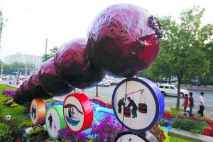 在天安門東側(cè),翠綠的檜柏已堆成山狀;在天安門西側(cè),3個(gè)鐵藝的“彩虹橋”已露出雛形……據(jù)北京城建集團(tuán)花木公司相關(guān)負(fù)責(zé)人介紹,7月底之前,包括天安門、長(zhǎng)安街、機(jī)場(chǎng)航站樓、機(jī)場(chǎng)路、奧運(yùn)中心區(qū)在內(nèi)的重點(diǎn)區(qū)域擺花工作將全面完成。