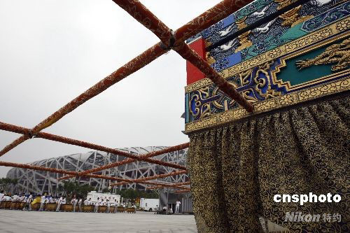 7月30日,第29屆夏季奧運會開幕式在北京國家體育場“鳥巢”進行封閉式彩排,參演人員和道具陸續(xù)入場。 中新社發(fā) 杜洋 攝
