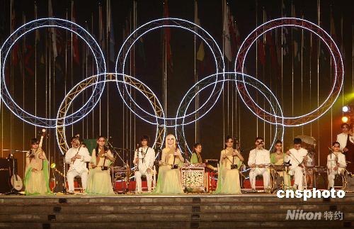 7月31日晚,中國殘疾人藝術(shù)團(tuán)冒雨在奧運(yùn)村表演《我的夢(mèng)》,吸引不少運(yùn)動(dòng)員觀看。據(jù)悉,中國殘疾人藝術(shù)團(tuán)將在北京殘奧會(huì)開、閉幕式上進(jìn)行表演。 中新社發(fā) 武仲林 攝