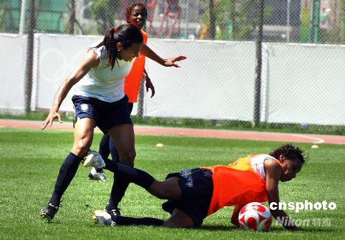8月3日,巴西女足靈魂隊(duì)員瑪塔(左)與隊(duì)友在訓(xùn)練中。當(dāng)日,巴西女足隊(duì)員在沈陽奧體中心訓(xùn)練場進(jìn)行訓(xùn)練。6日,巴西女足將在奧運(yùn)會女足比賽小組賽中對陣德國女足。中新社發(fā) 張宇 攝