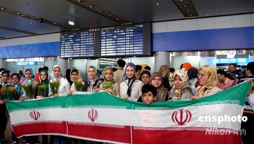 伊朗“美女團”北京機場歡迎本國運動員