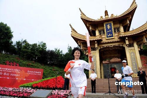 8月4日上午,北京奧運(yùn)火炬開始了在四川樂(lè)山市的傳遞,這是四川省境內(nèi)傳遞的第2站。首棒火炬手是兩度獲得奧運(yùn)會(huì)冠軍,開創(chuàng)跳水界“高敏時(shí)代”的“跳水皇后”高敏。當(dāng)日下午,奧運(yùn)火炬將在綿陽(yáng)九州體育館和廣漢三星堆進(jìn)行展示。中新社發(fā) 廖攀 攝