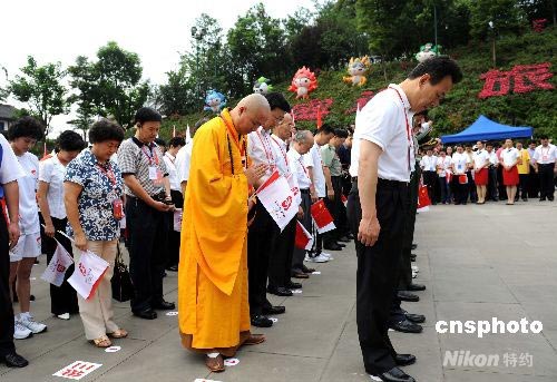 樂山起跑儀式上與會全體為地震遇難者默哀