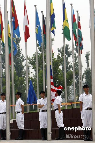 8月4日,馬來西亞奧運代表團在北京奧運村舉行升旗儀式。 中新社發(fā) 杜洋 攝