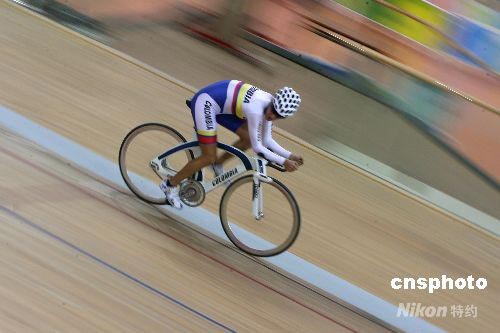 8月4日,哥倫比亞隊隊員在北京老山自行車館進行訓(xùn)練,備戰(zhàn)即將開幕的北京奧運會。 中新社發(fā) 武仲林 攝