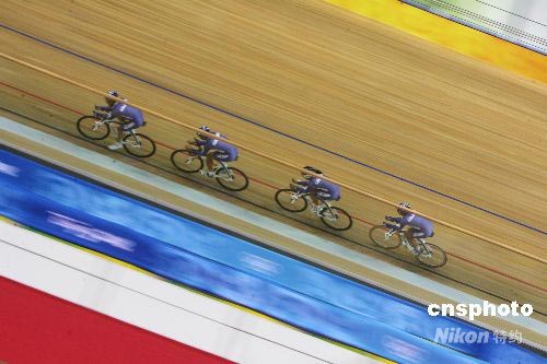 8月4日,哥倫比亞隊隊員在北京老山自行車館進(jìn)行訓(xùn)練,備戰(zhàn)即將揭幕的北京奧運會。 中新社發(fā) 武仲林 攝