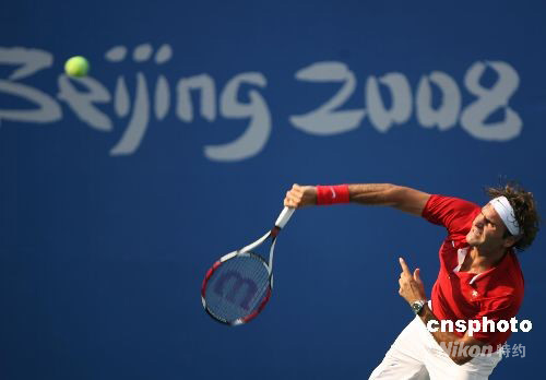 瑞士天王費(fèi)德勒在北京奧運(yùn)網(wǎng)球賽場(chǎng)積極備戰(zhàn)。 中新社發(fā) 武仲林 攝