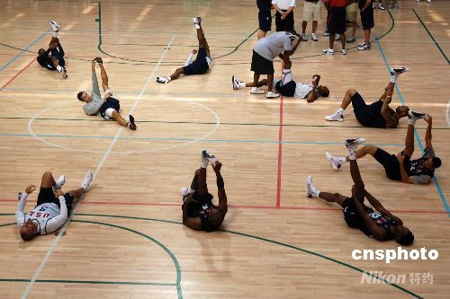 8月7日中午,美國男籃“夢八隊”在北京開始抵京后的首次訓(xùn)練。 中新社發(fā) 賴松 攝