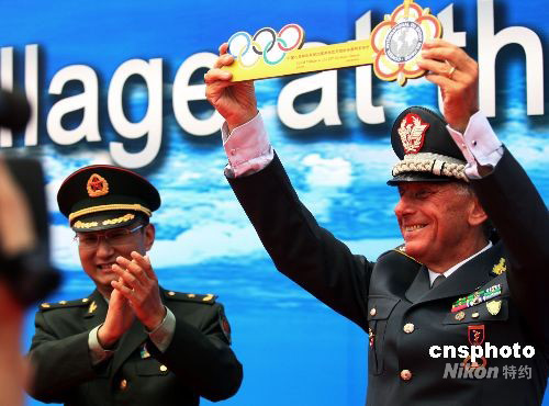 圖:國際軍體村開村儀式上遞交村門鑰匙