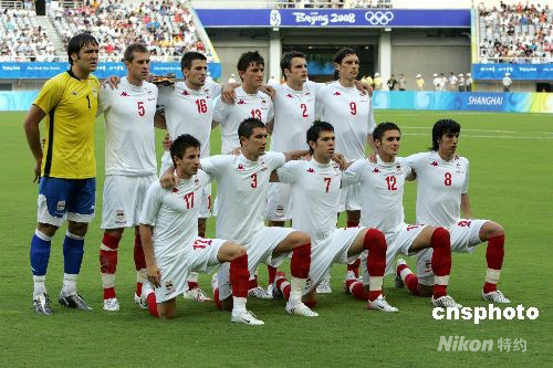 8月7日,北京奧運(yùn)會上海足球分賽場男足預(yù)賽開賽,首場比賽由澳大利亞對陣塞爾維亞。中新社發(fā) 湯彥俊 攝