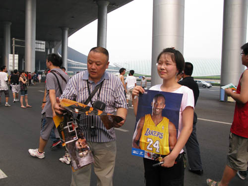 鄭非凡與父親一起專程趕至首都機(jī)場(chǎng),只為一睹科比風(fēng)采。即將就讀高一的鄭非凡說,從兩年前開始喜歡科比,“因?yàn)樗虼虻锰貏e好”,也十分喜歡中國(guó)的姚明。