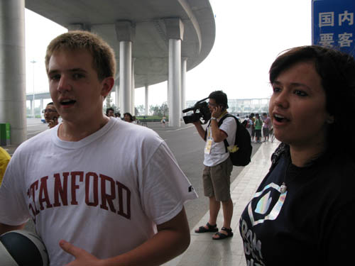 另外,明星組合S.H.E.出站時(shí)將機(jī)場(chǎng)的追星局面推向高潮。敏感的記者、球迷看見簇?fù)砣巳航?jīng)過,誤以為“夢(mèng)八”到來,蜂擁而上。之后,李宇春的到來,也讓現(xiàn)場(chǎng)一些外國(guó)記者“誤會(huì)”為體育明星。(孫延)