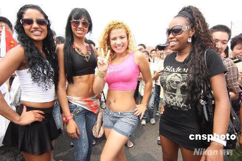 8月8日中午,距離北京奧運(yùn)會(huì)開(kāi)幕不到8個(gè)小時(shí),幾位來(lái)自巴西的美女觀眾,在“鳥(niǎo)巢”旁跳起奔放熱烈的桑巴舞為中國(guó)奧運(yùn)加油,迎接奧運(yùn)開(kāi)幕式的到來(lái)。 中新社發(fā) 吳芒子 攝
