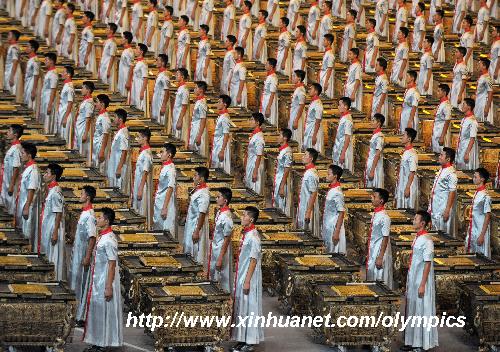 8月8日,第29屆夏季奧林匹克運動會在中國國家體育場隆重開幕。這是開幕式上的擊缶表演。 新華社記者劉大偉攝