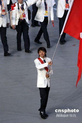 中國(guó)香港自行車名將黃金寶出任旗手。