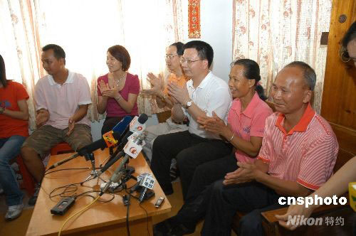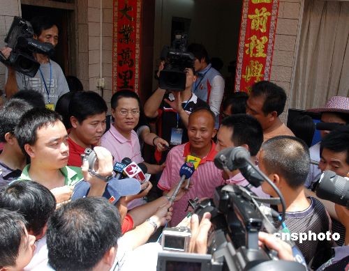 圖為各大媒體記者采訪(fǎng)陳?ài)葡几赣H。中新社發(fā) 袁宏偉 攝