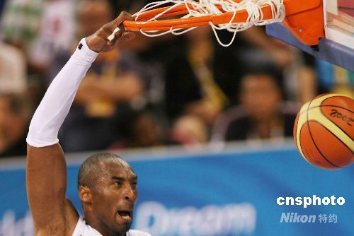 圖:北京奧運(yùn)會(huì)中美男籃大戰(zhàn) 科比大力扣籃