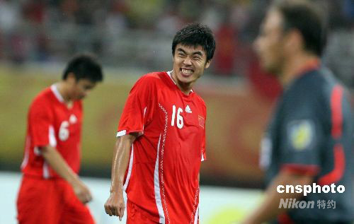 圖為趙旭日為失去絕好射門機(jī)會(huì)惋惜。中新社發(fā) 張宇 攝