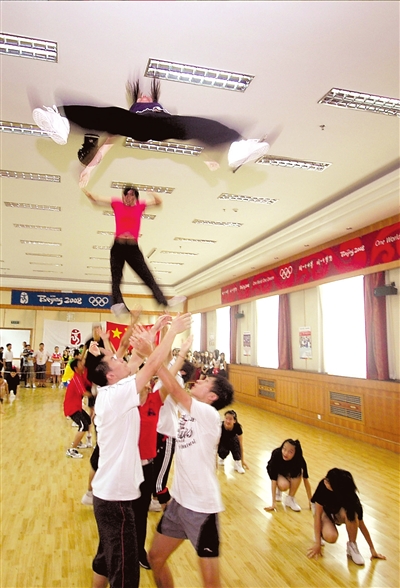 “我能入選,是因為我參與過CBA的演出。”趙寧說,在去年底進(jìn)行的為奧運(yùn)選拔拉拉操的比賽中,她感到了專業(yè)團(tuán)隊身上的技術(shù)和舞蹈編排的優(yōu)勢。起初,她覺得自己入選的可能幾乎為零,因為專業(yè)隊員的技巧是她短時間內(nèi)無法達(dá)到的。