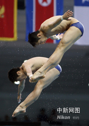 8月11日,中國組合林躍、火亮獲得北京奧運(yùn)會(huì)男子10米雙人跳臺(tái)冠軍。中新社記者 杜洋 攝