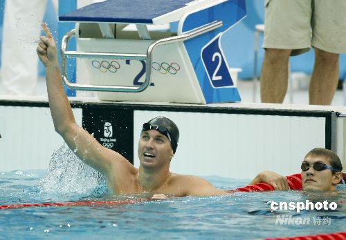 8月12日,北京奧運(yùn)會(huì)男子100米仰泳決賽,美國選手佩爾索爾以52秒54的成績打破今年7月由他自己創(chuàng)造的52秒89的世界紀(jì)錄,獲得金牌。中新社發(fā) 杜洋 攝