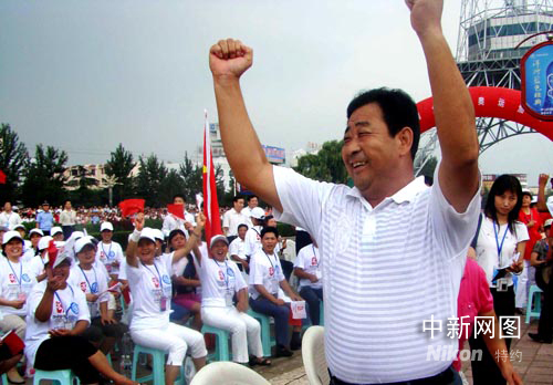 中新網(wǎng)新泰8月13日電(記者 胡洪林 張璐 通訊員 褚成東)在今天下午第29屆奧運(yùn)會(huì)男子雙人3米跳板決賽過程中,遠(yuǎn)在家鄉(xiāng)的王峰父母一直緊張地在山東省新泰市中心電視塔廣場透過大屏幕觀看兒子的比賽。當(dāng)王峰和秦凱雙人組合獲得金牌一霎那,王峰52歲的父親王道軍激動(dòng)地從座椅上站了起來,揮舞雙拳高聲為王峰加油,為北京加油,為奧運(yùn)加油。