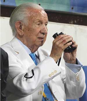 中新網(wǎng)8月15日電 據(jù)香港大公報(bào)報(bào)道,8月14日,國(guó)際奧委會(huì)終身名譽(yù)主席薩馬蘭奇在香港觀看奧運(yùn)馬術(shù)盛裝舞步團(tuán)體賽決賽。